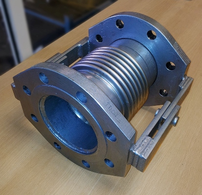 Universal expansion joints contain two bellows with multiple convolutions joined by a center pipe or spool.